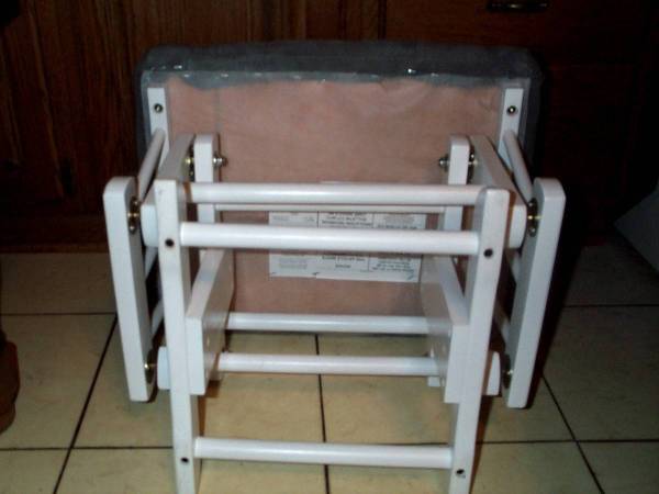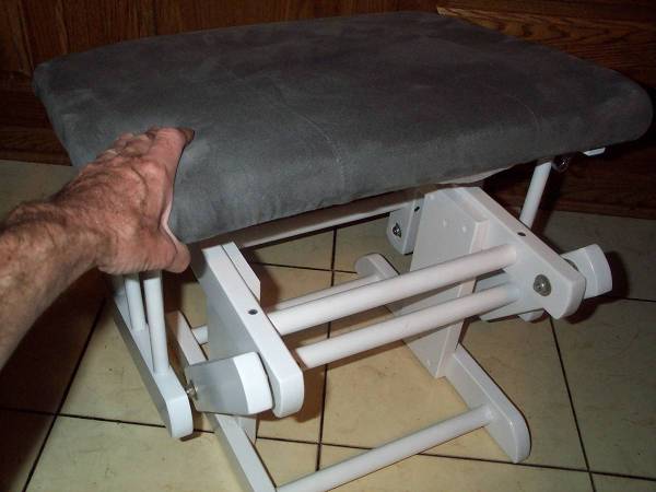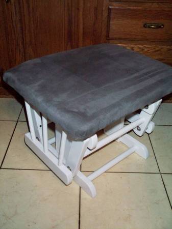 Very comfortable stylish glider ottoman. White wood base. Gray cushioned plush top. VERY COMFORTABLE and glider works perfectly and silently. Excellent condition. Smoke free home. Measures 20 1/2" wide x 17" deep x 14 1/2" height. Easy pick up from Villa Park, IL. Please CALL or TEXT show contact info