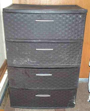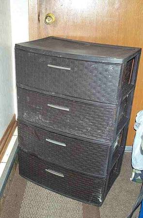 Plastic Sterilite 4 drawer storage brown cabinet. Light weight and portable. Measures aprox 22" length x 15 1/4" deep x 31 1/2" height. Pick up from Villa Park. Please call or text show contact info
