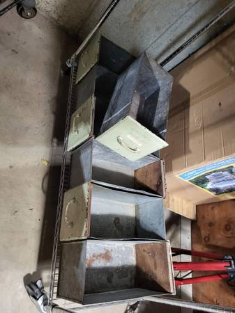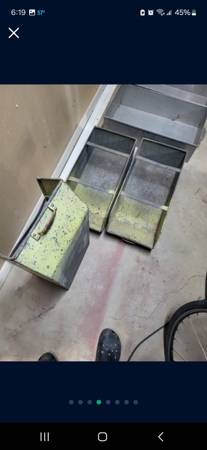 Misc drawers/bins, unsure of what they all came from. Use your imagination for a use. Garden? Shop storage? Decorative? Whatever you can imagine. Make an offer.