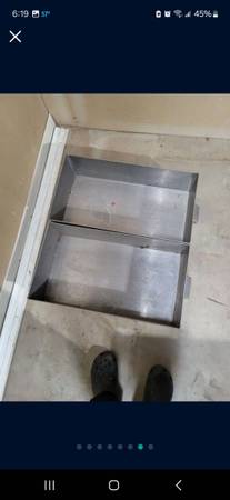 steel bins/lids w/ handles x 4 (1 not in photos)