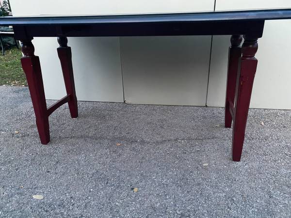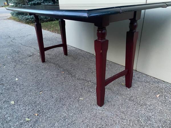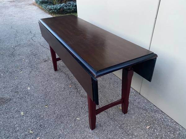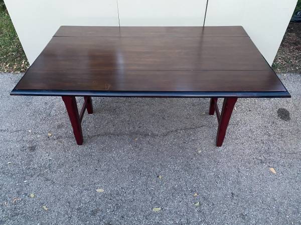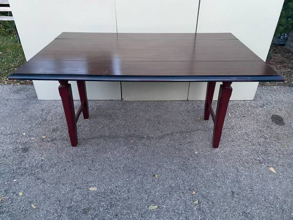 Pier 1 Import 60" Solid Wood Drop Leaf Dining Table Mahogany top with dark red legs Measurement - 60"W x 36"D x 30"H (60"W x 21"D with leaves dropped) Pickup northeast side of Wheaton