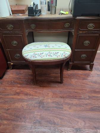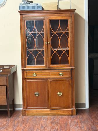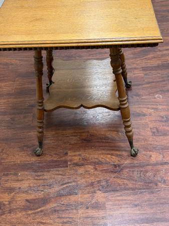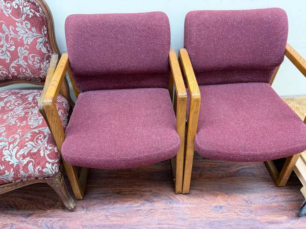 Louis XV armchairs, Oak parlor table, Carved religious figures, Vintage French style Satinwood dresser, barrel chairs, conference table, mission style table, Joerns Brother dresser, Stain glass, and much more.