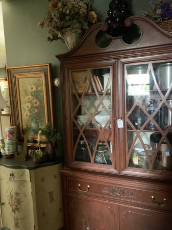 Beautiful vintage , primitive , antique Estate Sale . Select Antique Furniture pieces , stunning Breakfront with back board carved mirror , Antique and primitive styled chests , country farm style...