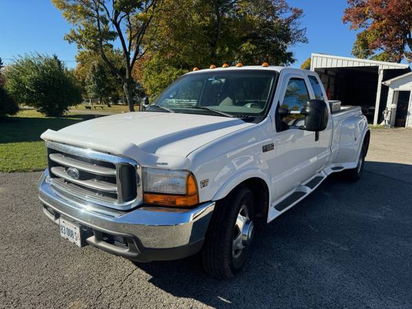 6. 1998 Ford F350 XLT Super Duty Pickup Truck, Diesel, Powerstroke V8, White, Dually, Tires Like New, Reese Hitch, Diamond Plate Tool Box w/ Truck Bed Skid Fuel Tank, 154976 Original Miles.