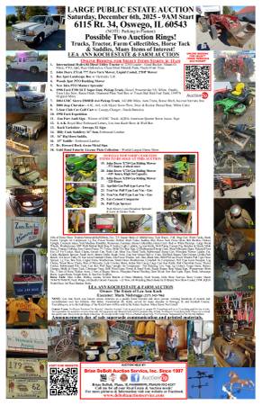 NOTE: Lea Ann Koch was known across America as a quality horse breeder and show person, winning hundreds of awards and accreditations over her lifetime. Her father, Veterinarian Dr. Koch, served for many decades in Oswego, IL and Kendall County. Everything on, or in the buildings, of the Koch Farm will be sold at the Estate Auction. Many Items Not Listed!
