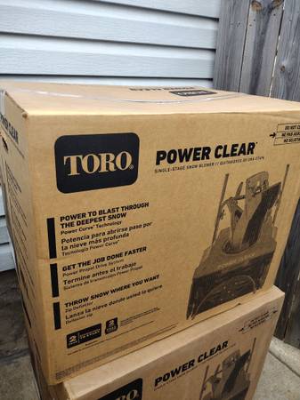 Has a 212cc 4-cycle OHV engine, push button electric start or pull start option, 21" inch snow clearing width, power propel self propelled technology, and locking chute deflector. Brand new in sealed box, never been opened or used. Retails in stores for $779 plus the taxes. Serious inquiries only please, selling for $600 per box, I have 2 available, firm price. Located in Aurora for pick up, contact Joe at show contact info