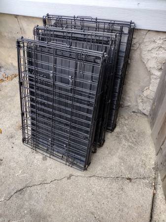 Small metal Dog cages, I have 2 left. Both of them fold up for easy storage and have 2 entrance doors. Excellent like new condition. Serious inquiries only please, selling for $20 each, price is firm. Located In Aurora for pick up, contact Joe at show contact info