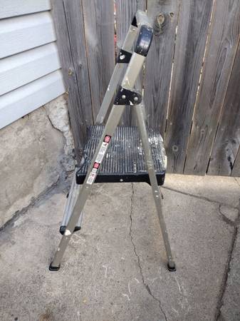 Made from aluminum, 2- step, 225 lb weight limit. Great condition, only has some paint stains. Serious inquiries only please, selling for $40, firm. Located in Aurora for pick up, contact Joe at .