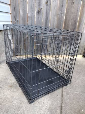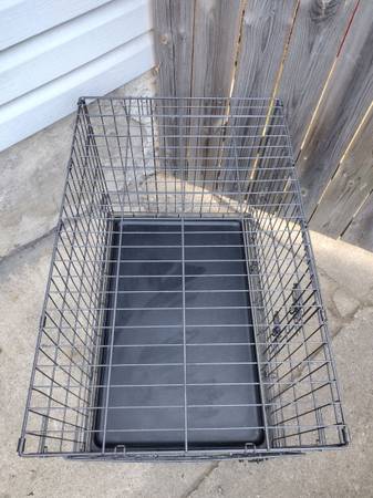Large metal dog crate, it folds up for easy storage and has 2- entrance doors. Measurements are 36" inches long, 23" inches wide, by 26" inches tall. Great condition. Price is $50, firm. Located In Aurora for pick up, contact Joe at show contact info