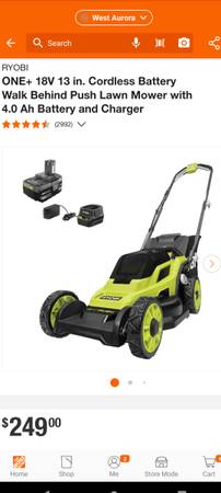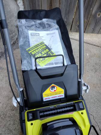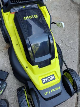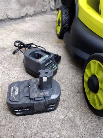 Ryobi 18V cordless battery walk behind push lawnmower. Comes complete with bag, owners manual, charger, and a 18V 4.0 AH battery. Includes everything you need, perfect mower for small areas. Works perfect and like brand new condition, only used it one time. Retail's in stores for $249 plus the taxes. Serious inquiries only please, selling for $150, price is firm. Located in Aurora for pick up, contact Joe at show contact info