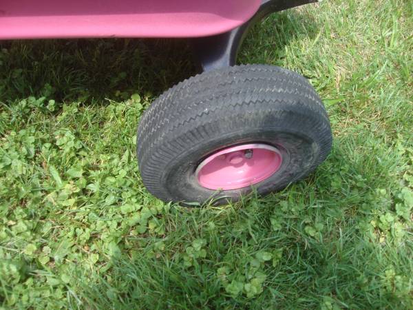 FILL IT UP WITH FLOWERS, THE RRONT TIRES ARE NOT ON THE RIMS. (I ONLY HAVE A SMALL AIR COMPRESSER, NOT ENOUGH AIR TO GET THE TIRES BACK ON THE RIMS ) IINSIDE MEASURES 32 X 14 X4 " DEEP