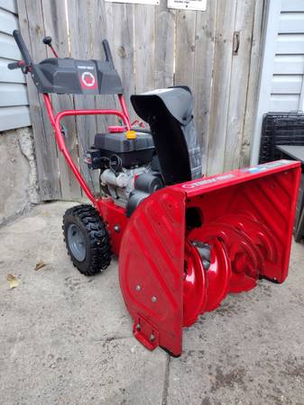 Has a 179cc 4-cycle OHV engine, push button electric start or pull start option, 24" inch snow clearing width, heavy duty snow tires, steel augers, and self propelled 6 speeds forward 2 speeds. Runs perfect, ready for the winter season. Serious inquiries only please, selling for $325, price is firm. Located In Aurora for pick up, contact Joe at show contact info