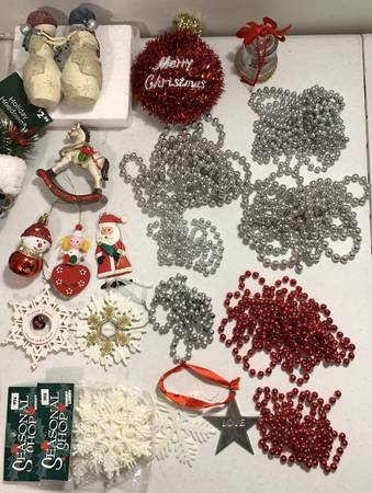 25 Christmas Ornaments Beaded Garland & Snowmen Decor Bundle