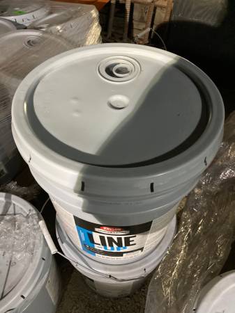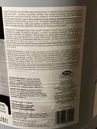5 GALLON PAIL OF FLAT BLACK PAINT. KRYLON LINE-UP PAINT, FOR PARKING LOTS, CAN CAN BE USED ON OTHER SURFACES, LIKE CONCRETE, WOOD, METAL, ETC. RETAILS FOR AN AVERAGE PRICE OF $175 - $225. A PALE. SELLING FOR $40. A 5 GALLON BUCKET. ( I HAVE MORE THAN 10 AVAILABLE.)