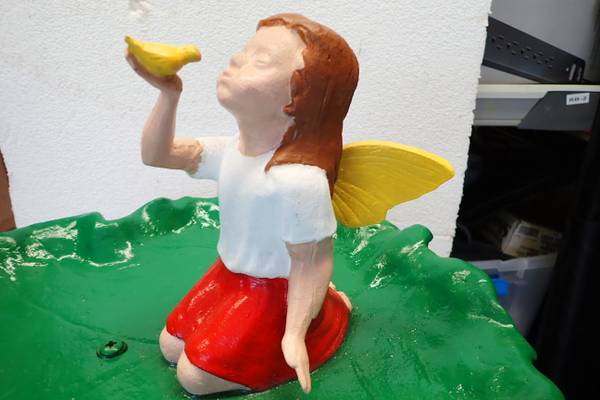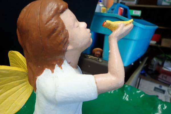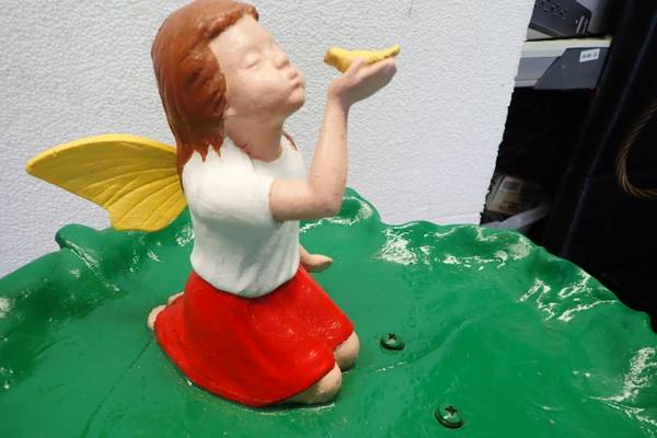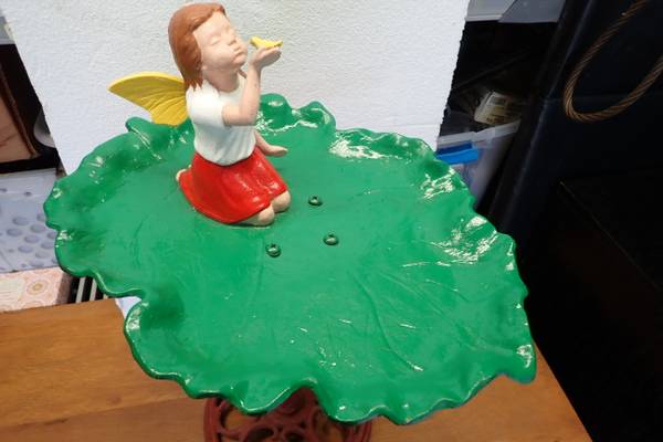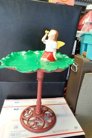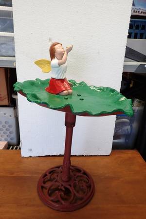 Antique Cast Iron Bird Bath Leaf Design With Angel Beautiful