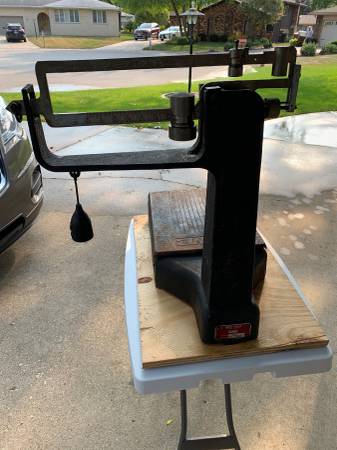 VINTAGE CAST IRON HOWE SCALE NO. 8814, 100 LB. PLATFORM BALANCE BEAM, COUNTER TOP SCALE IN GOOD WORKING ORDER. SHOWS NORMAL WEAR FOR IT'S AGE, COMPLETE WITH ADD-ON WEIGHT. MEASURES 21"HIGH, 19"WIDE, 22"DEEP, PLATFORM MEASURES 14-1/2"LONG, 11"WIDE. MADE IN USA.