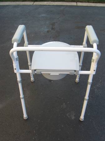 This is a Guardian medical commode model G1-200X1 with inside dimensions of 18" long by 16" depth with an adjustable seat height from 16" up to 22" in 1" increments. It has a removable back bar and has arm rests and both the back bar and arm rests are adjustable in height from 26" up to 31". It has a elongated size toilet seat and the weight limit is 350 lbs. In very good condition and cash at time of pick up.
