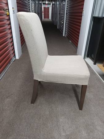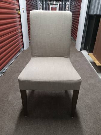 Update: medium brown frames are no longer available. For sale are two sets of 4 of Ikea Henriksdal chairs. One set has the medium brown wood frame, and the other set has the black brown color wood frame. The last picture shiws the difference between the two colors. We have a set of used tanish color washable covers that are included, with no known tears, rips, or stains but a few may have some light pilling on them. Each chair with cover sold for about 129.00 plus tax (no longer sold), and we are selling either set for $200.00. They are currently disassembled but reassembled one for pictures. Delivery to surrounding suburbs may be available. We also can sell four new, still in package light gray covers for an additional 50.00 (regularly nearly 150.00 to 200.00). We are also selling a few ikea Bjursta extendable dining tables in other listings.
