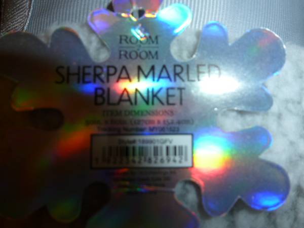 Room2Room Sherpa marled polyester throw blanket light gray polyester 50" x 60" Made in China. New. Text is best - call to talk.