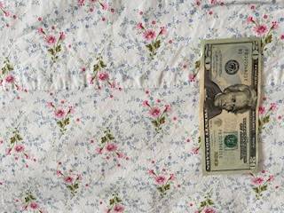The money shown in the pic is just to give you an idea of the pattern size and not included in sale.