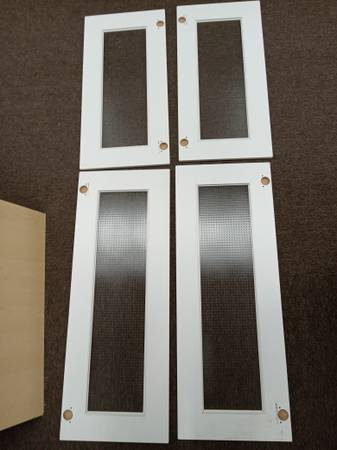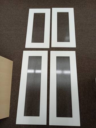 For sale are 7 white Ikea Adel kitchen doors that will not be needed. They are generally in good to very good condition. These were originally for the Ikea Akurum kitchen cabinets but have been told adaptations are supposedly viable to other lines, including Ikeas current line. Includesd are one 24" wide by 39" high door, two 18" wide by 30" wide doors, two 15" wide by 39" glass dimple pane doors, and two 15" wide by 30" glass dimple doors. Selling the thee non glass doors for $50.00, the 4 glass dimple doors for $70.00, or all 7 for $100.00.