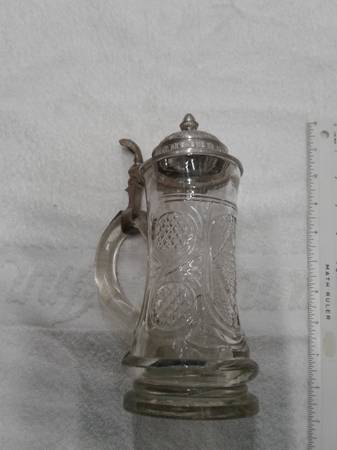 Antique lidded beer stein probably German unsure of age I've had this for over 30 years. Nice stein in excellent condition no chips, cracks or damage heavy glass with ornate pewter lid. See pics for condition $95 OBO Check my other items listed. Thanks for looking.