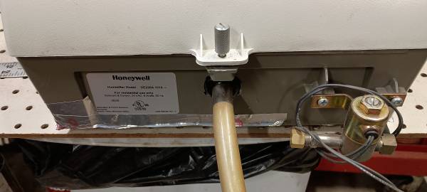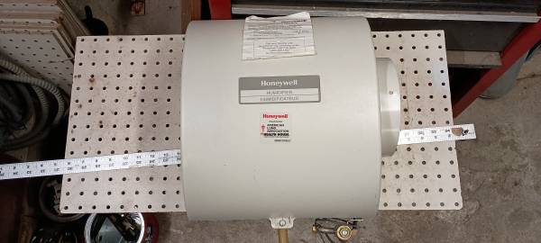 Honeywell By-Pass Flow-Through Whole House Humidifier Model HE22A-1019 24 VAC, 6 watts, 60 Hz Includes 2 Best Air water pads model A10 (1 new in box), owners guide, drain hose, & 6" duct pipe...