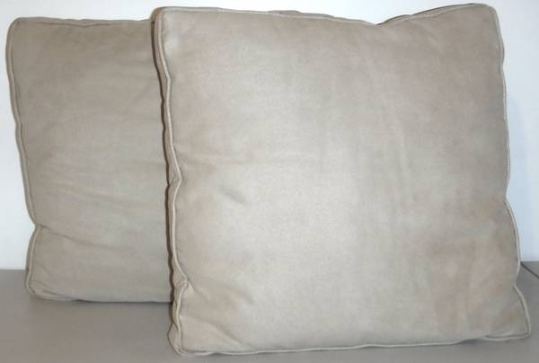 Set of 2 beige square cushy Microfiber decorative throw Pillows