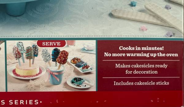 No oven needed. Cooks in minutes! Quick and easy to use. Just plug it in and enjoy. No more warming up the oven. Makes 5 cakesicles that are ready for decorating. Non-stick plate for easy clean up.