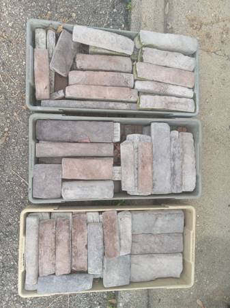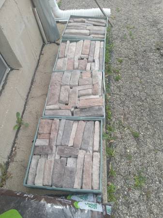 For sale is brick face material that can be used for barbeque areas, deck areas, garden areas etc. There are 3 full square flat crates, 3 full long rectangular crates, and a full square cardboard box. Probably hundreds of pieces. ALL F0R $90.00, reduced from 110.00. Located near I355 and North Avenue in the Addison Glen Ellyn Lombard area.