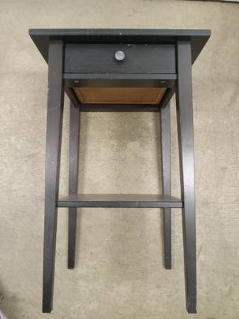 For sale are a pair of black brown Ikea Hemnes nightstands. They are generally in good condition with some light touchups that might be wanted. They each sell for just about $110.00 with tax when new, and come unassembled. We are selling each for $65.00, or the pair for $120.00, saving you about $100.00 for the pair and assembling them. Prices reduced from $75.00 each or both for $140.00. I will provide pictures and measurements shortly. We are also selling black brown Ikea beds and 3 drawer chests in other listings. We are also selling a pair if ikea lamps in another listing.