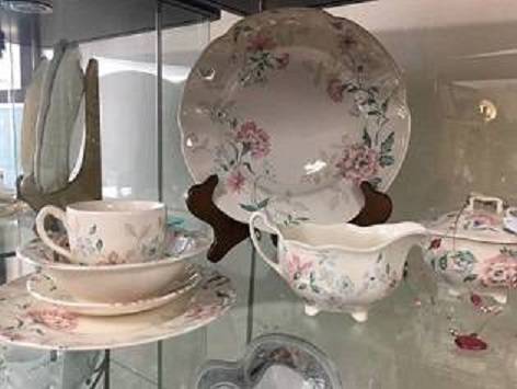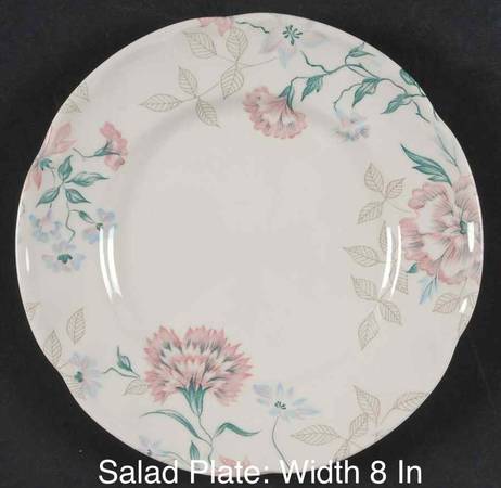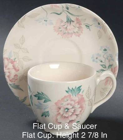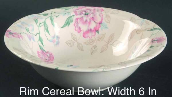 This elegant and timeless 45-piece dinnerware set was made in England by Johnson Brothers. Beautiful pink carnations and buds with little pale blue flowers, green foliage and small sprigs of leaves adorn the decoration on a creamy ground. The attractive design introduces an eye-catching hint. With clean, smooth forms, these pieces are the perfect canvas to accessorize the table for any occasion especially the best choice for formal occasions. Or you can mix and match with other basic white dinnerware for daily use to give your table a lot of appeal. The set is both microwave and dishwasher safe.
