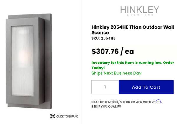 Quantity 5 - Hinkley High-End Titan Outdoor Wall Sconce Exterior...