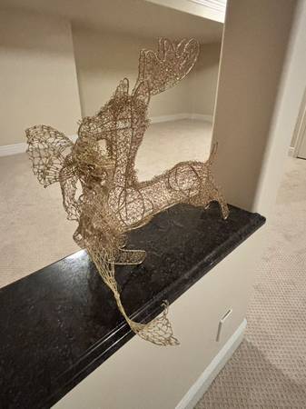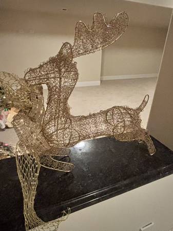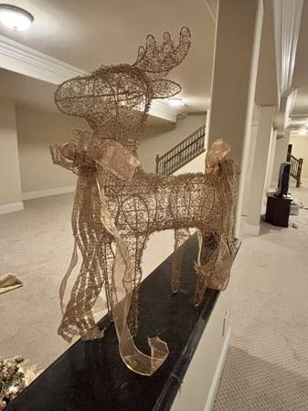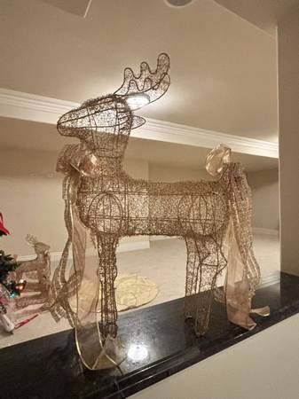 Set includes 4 matching gold reindeer (various poses/sizes) Approximate size of largest reindeer: 22” W x 32” H, smaller reindeer: 20"W x 20" H Sturdy gold wire construction with fine detailing...