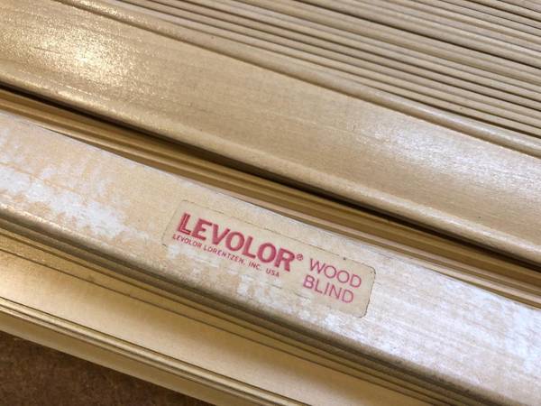 Wood Slat Window Blind, Custom Made, Cream Color, Non Smoker. 25 7/8" Wide x 45" Length, 1" Slats, Control Cord and Lift Control Cord on Right Side, $38.00
