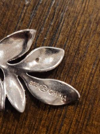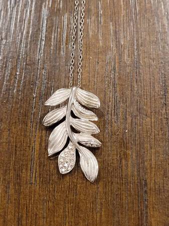 Fresh Estate Find. Beautiful Vintage Sterling Silver Necklace. Link Chain with Floral Motif Slide Pendant. Pendant includes a teeny tiny chip diamond accent. Necklace measures approximately 18.5 inches from bail to clasp. Both Chain and Charm Stamped .925 . Approximately 4 gram total weight. Excellent Condition. Asking $30 obo. $6 Insured Ground Advantage Shipping or Free pick up in DeKalb, Pingree Grove, or Sublette IL.