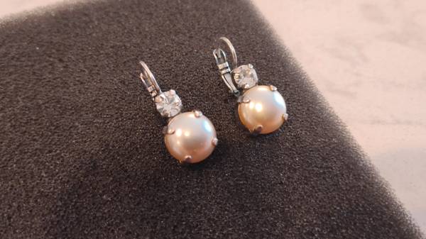 These pretty like-new earrings would make a great holiday gift for the jewelry lover in your life. High-quality crystals in On a Clear Day and Pearl in a classis look that will go with anything.