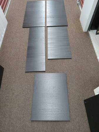 For sale are a group of 12 to 14 Ikea black brown Nexus Doors that we will not be needing. They were for the ikea Akurum kitchen cabinets but guessing you can adapt them for other items. Included are four 18" wide by 39 to 40" high, one 16 3/4" wide by 39 to 40" high, two 12" high by 39 to 40" high, two 15" wide by 30" high, and four 18" wide by 24" high doors. Selling the complete group for $100.00, but if picked up by end of day on October 15th, we will accept $50.00. New they would have probably cost over $500.00 (do not have receipts of them anymore). Some have the holes for the two post hardware, some do not. Only one of each of the five different sizes are in first picture. Light shows glare on them so I tried to show you the wood grain look in the second picture.