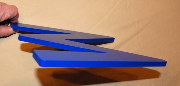Navy Blue on front, white on reverse side. Inset holes on reverse side for wall attachment if desired.