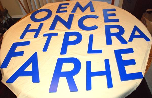 17-heavy acrylic letters. Most roughly 9"H x 6"W x 1/4" Depth. Some smaller 7-1/2" x 4"x 1/4".
