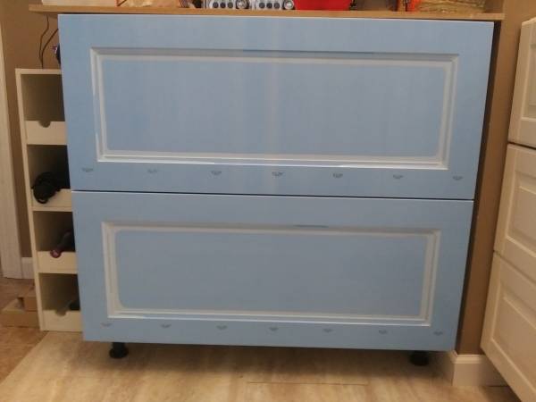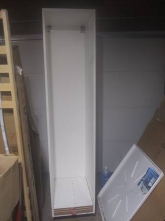 Possible buyer of 80" high cabinet, but please text if interested in case sale falls through. For sale are two Ikea white 18" wide Sektion high cabinets. One is 80" high and was assembled for a kitchen remodel but changes were made. It is in good to very good condition, assembled (I can disassemble for transport or deliver if in surrounding suburbs) but never installed. Only known defect (was that way in box but I did not open it for a while to notice it) is on back left edge which I have included in pictures. We also have a cover panel for sale that could cover it if it would be visible. Included is the cabinet frame and two shelves still in packaging. I also have an unassembled 90" high version never assembled, but not in box with two additional shelves. We also have different door and drawer options that we were going to try, along with a few assembled, but not installed drawers. We also are selling five assembled Ikea Sektion base units with drawers and some drawer fronts. Included are two 15" wide, one 18" wide, one 24" wide, and a 36" wide (with pictures to be added soon) " plan is to sell cabinets with some of the other items purchased for it (drawers, doors, etc). If interested please let me know. I can provide selling prices once I know what cabinet, doors, drawers you are interested in. Basically selling cabinet frames (most assembled) for 1/3 off of current selling prices, drawers (most assembled) about 1/2 off of new selling prices, and doors and drawer fronts (mostly, but not all Bodbyn) about 60% off of new selling prices. Expected to be moved by end of month so will be either unavailable due to difficult accessibility or price may go up