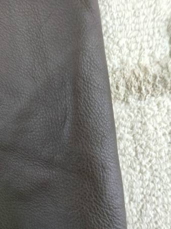 Chocolate Brown Leather. High quality cow hide with suede back. Piece measures 77" at it longest point and 40" wide. $50 Call or text Bob: