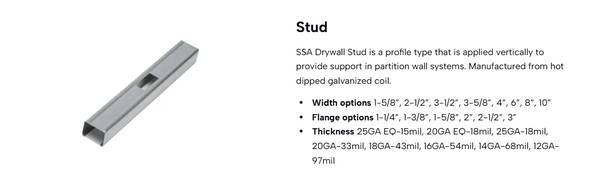 We are steel studs manufacturer and have a local factory at Lemont, IL. metal stud, track,U channel,Shaft Wall , Furring Channel, Utility Angle,Flat Stock ……