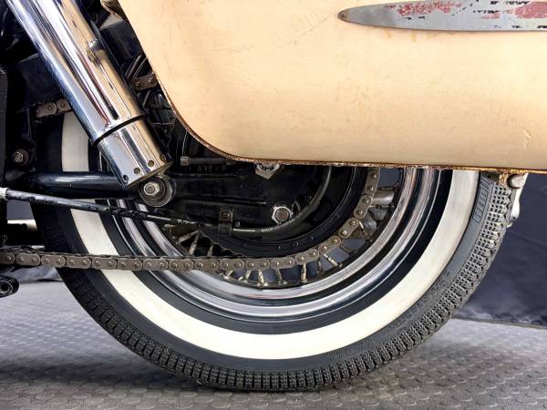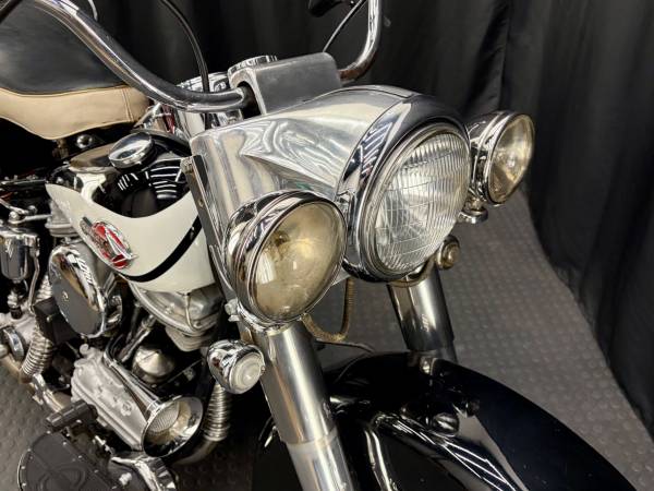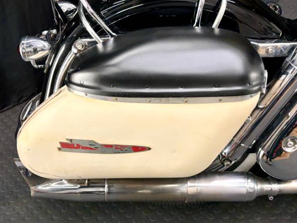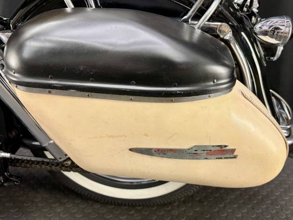 The cosmetic condition of this machine is just as it looks in the photos. Every finish on the machine is original. As far as I can tell, no part of the bike has been re-finished with the exception of the paint on the tank and fenders, which was done some time ago in the correct period colors of Birch White and Black.
