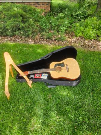 WASHBURN D9C ACOUSTIC GUITAR PLUS ACCESSORIES Includes Cloth hard case, extra strings, chromatic tuner, capo, wooden stand. $250.