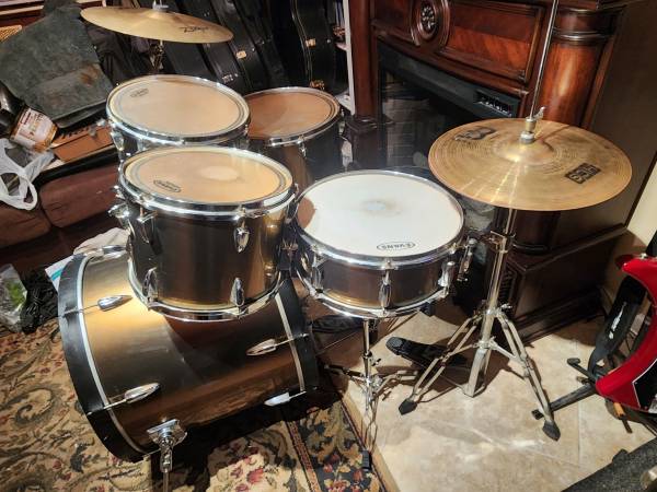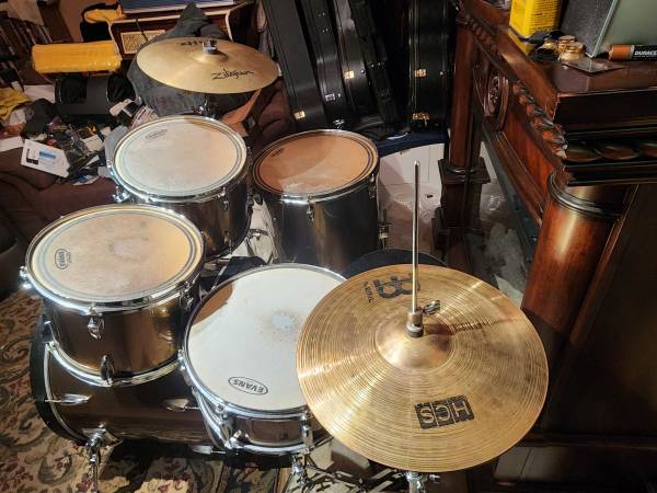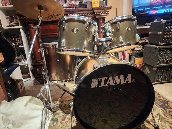 For sale is this Complete Tama 5 pc. Drum Set with nice Zildjian crash cymbal with boom stand and Meinl HCS hi hats with Tama stand and bass pedal. Evans heads on all drums. Great sounding and looking set ready for that next gig or perfect gift for that inspired musician. Tama throne and sticks will be included. No trades, Cash only and pick up
