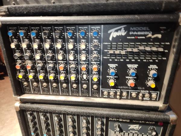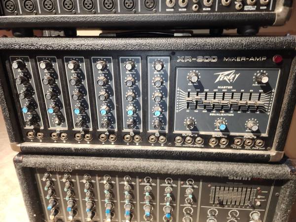 For sale are these 4 Powered PA Mixer/Amps. Selling as is for parts/repair as status is unknown past powering on. 2 of them power on after replacing the external fuses that were missing. The other 2 did not have external fuses and probably have them internally so were not checked or replaced. Im selling cheap as I do not have speakers to connect to test further. I assume they may need some sort of repair or at least fuses for the 2 not powering up. Fender Sunn SR 8250...