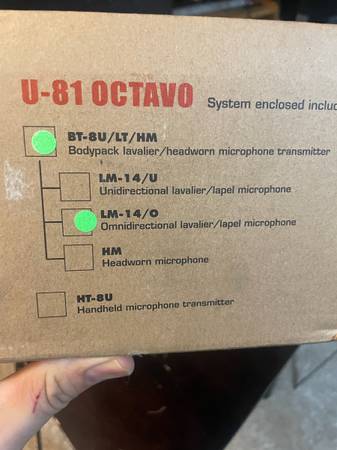 Package Contents U-81 Octavo Receiver; 8 x BT-8U Bodypack Transmitter; 8 x Lavalier Microphone (Omnidirectional); 2 x Antenna; 2 x Antenna Cable; AC/DC Adapter