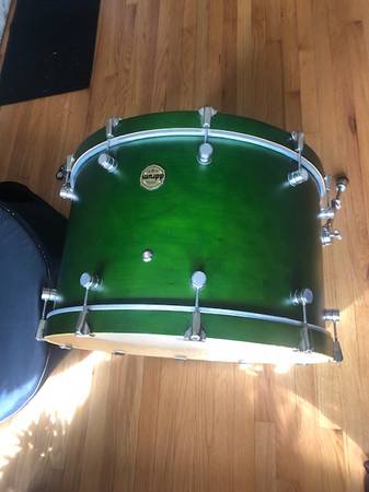 Zombie green Paladin Bass Drum, lightly used, includes case. Wood is Maple.