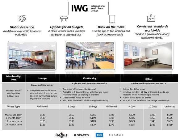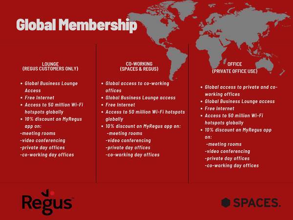 Regus memberships give you access to workspaces in thousands of locations worldwide! Work from any of our business lounges, reserve a dedicated desk, or a hot desk in our sociable, shared open-plan office spaces, or take a private office. Pay by the day at discounted rates or choose five, ten, or unlimited days' access a month.